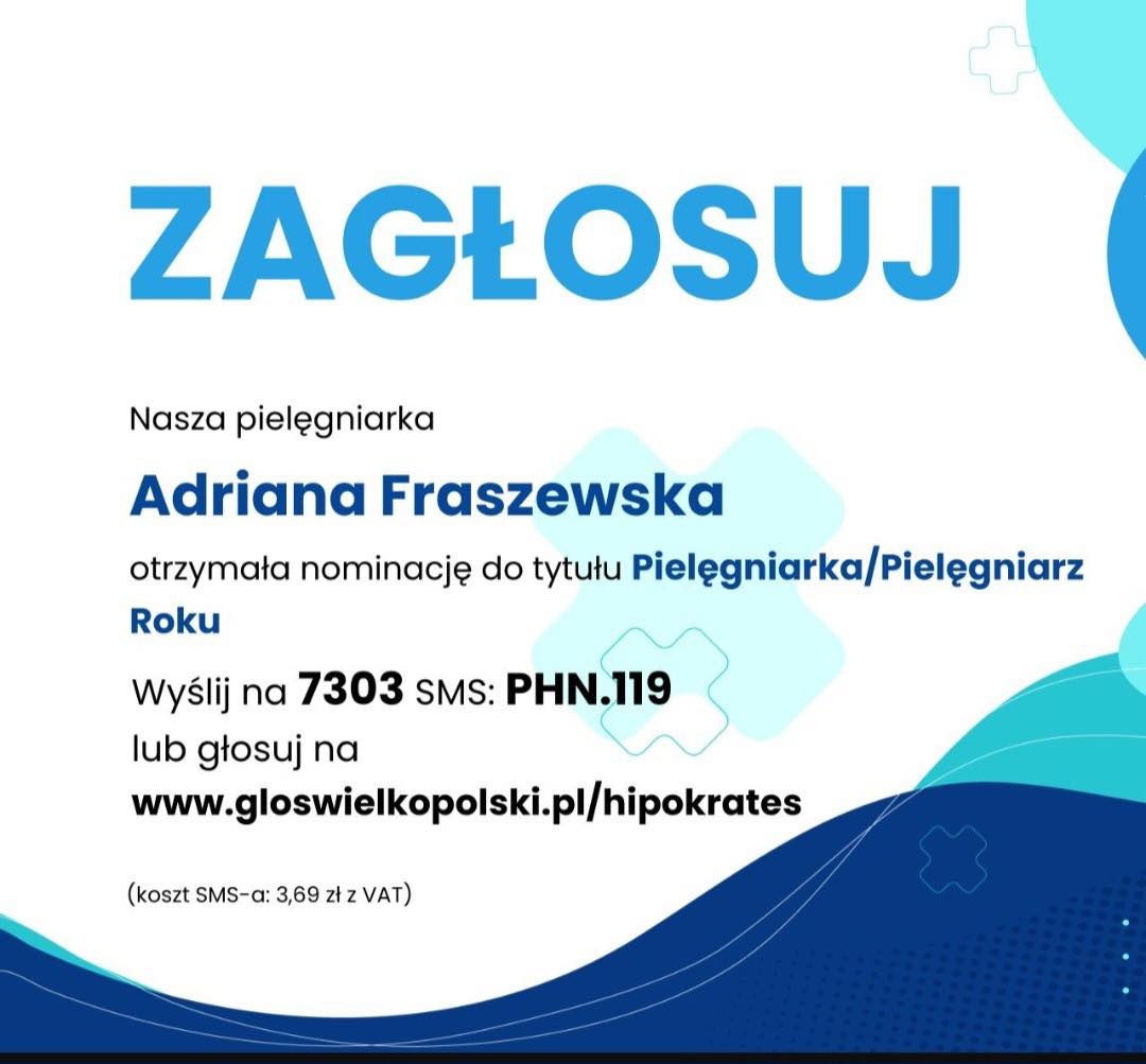 Z przyjemnością informujemy, że Pani Adriana Fraszewska, pielęgniarka z naszego zespołu, zwyciężyła w etapie powiatowym konkursu Hipokrates 2025 i awansowała do etapu wojewódzkiego.